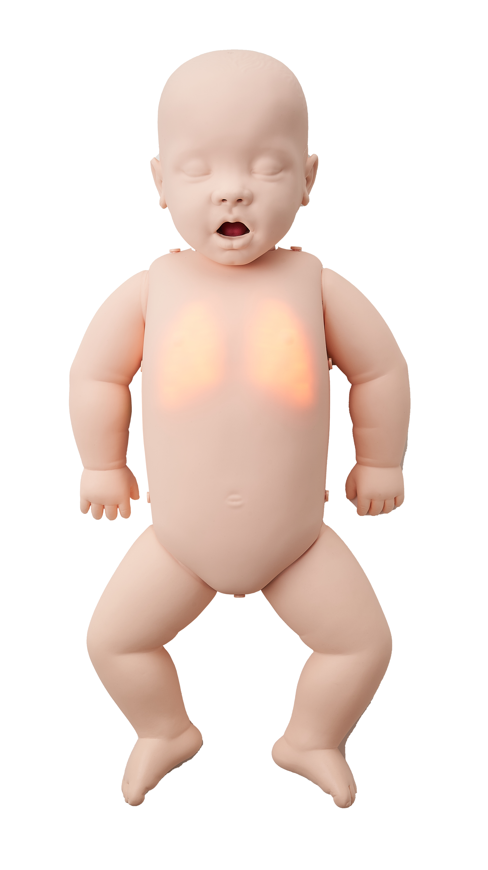 In addition, Brayden Baby Advanced has chest compression lights which operate in a similar way to the Brayden Advanced. These coach the student with regard to correct infant compression technique (depth, rate, recoil and finger/thumb position). As with the adult Brayden Advanced manikin (IM13), the lights are visible from a distance and enable an Instructor to validate a students’ performance from an appropriate social distance.